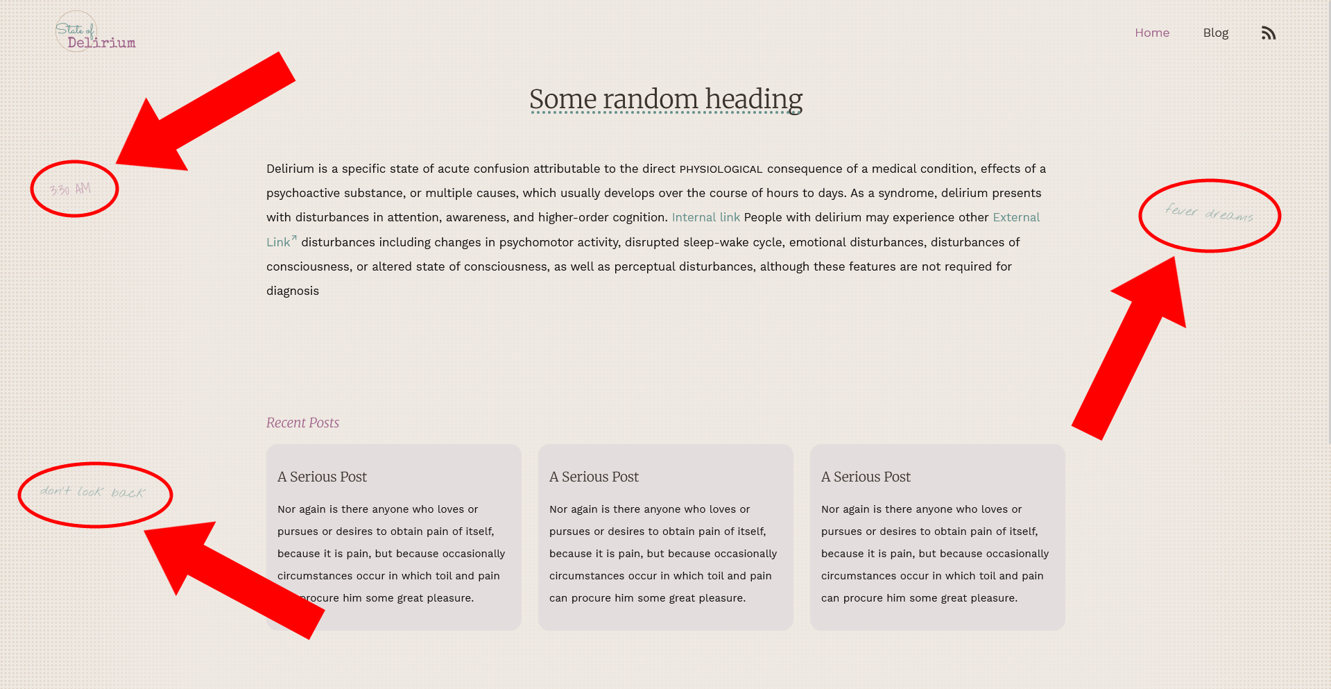 I want this site to be clean and lightweight, while not compromising on its personality and while preserving some quirky features. On account of it being lightweight, I have tried to reduce the use of Javascript throughout this site. However, where it enhances the experience and is strictly necessary, there are fallbacks in place.
